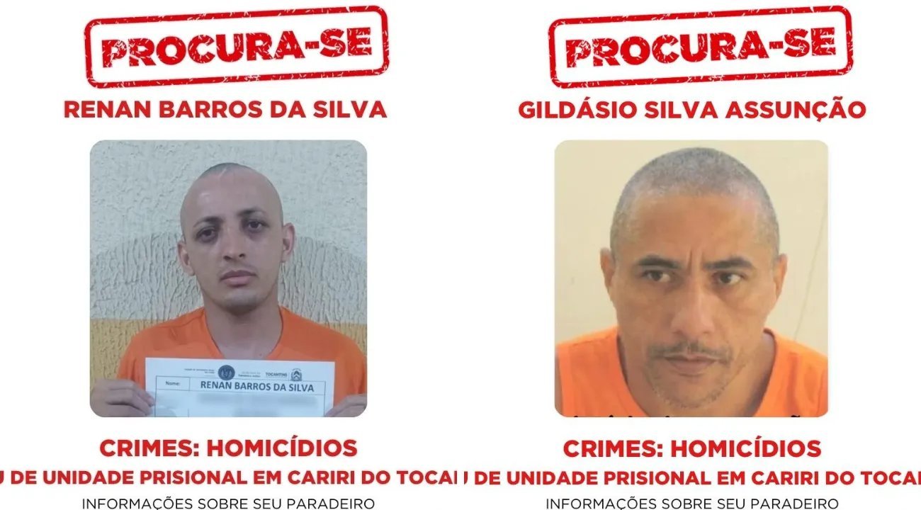 Dois presos considerados de alta periculosidade escaparam da Unidade de Tratamento Penal de Cariri, no sul do Tocantins, na noite de 25 de dezembro de 2025. A fuga envolve Renan Barros da Silva, de 26 anos, condenado a 72 anos de prisão e apontado pela polícia como serial killer, e Gildásio Silva Assunção, de 47 anos, que acumula penas que somam 46 anos. As forças de segurança realizam buscas intensas na região desde então.