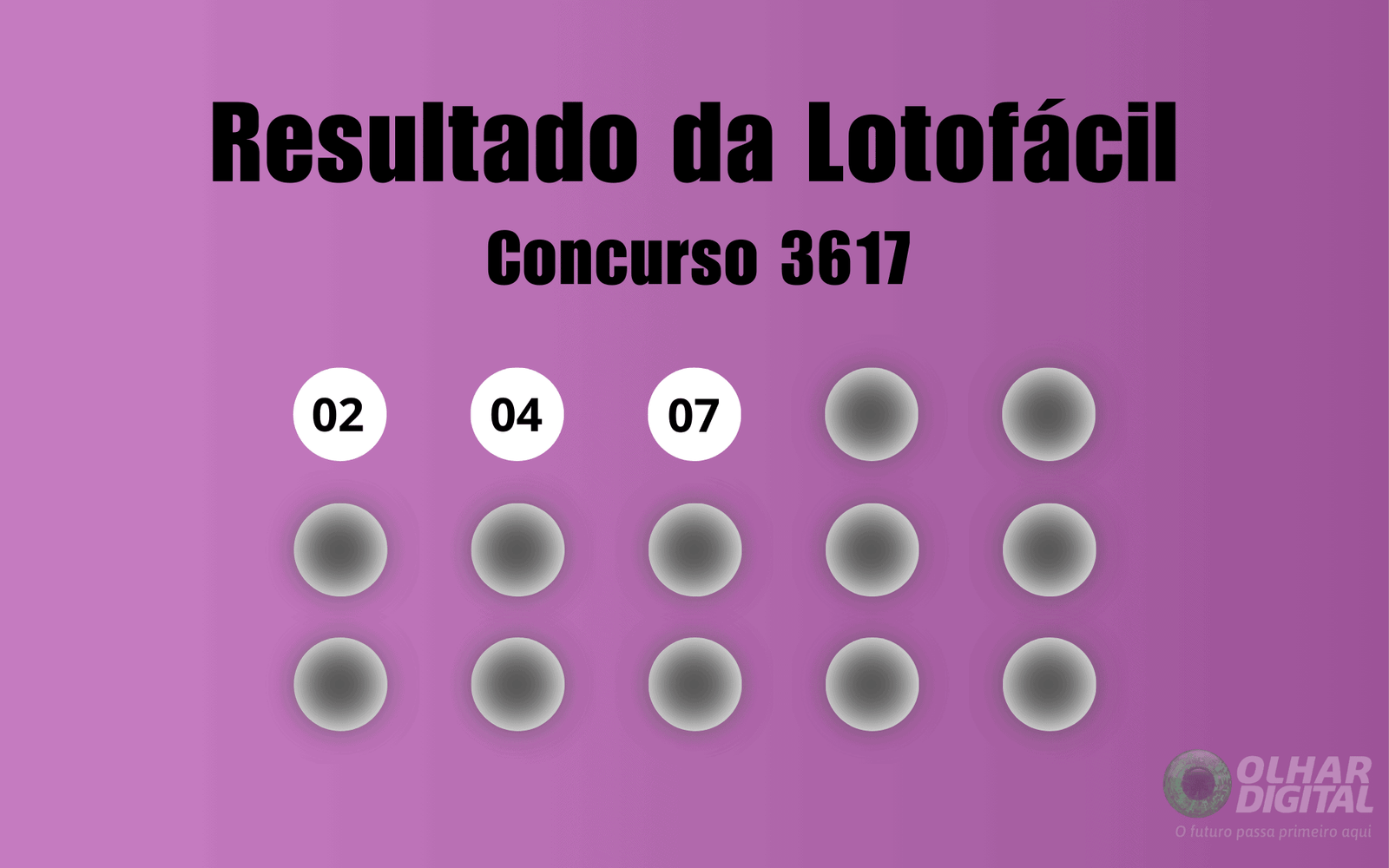 O concurso 3617 da Lotofácil foi realizado às 21h desta sexta-feira, 20 de fevereiro de 2026, com prêmio estimado em R$ 1,8 milhão. As dezenas sorteadas foram 02, 04, 07, 08, 10, 11, 12, 13, 16, 19, 20, 21, 22, 23 e 25.